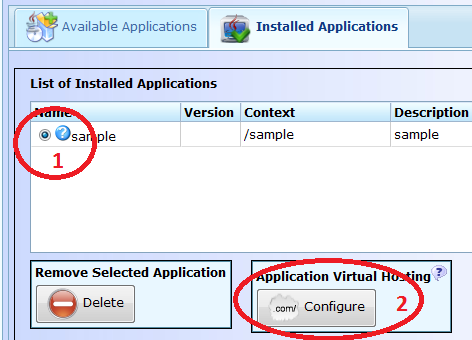 6. Access "Installed Applications" section and select the application you want to get displayed for main domain name like www.domain.com or domain.com , then click "Configure" button in "Application Virtual Hosting".